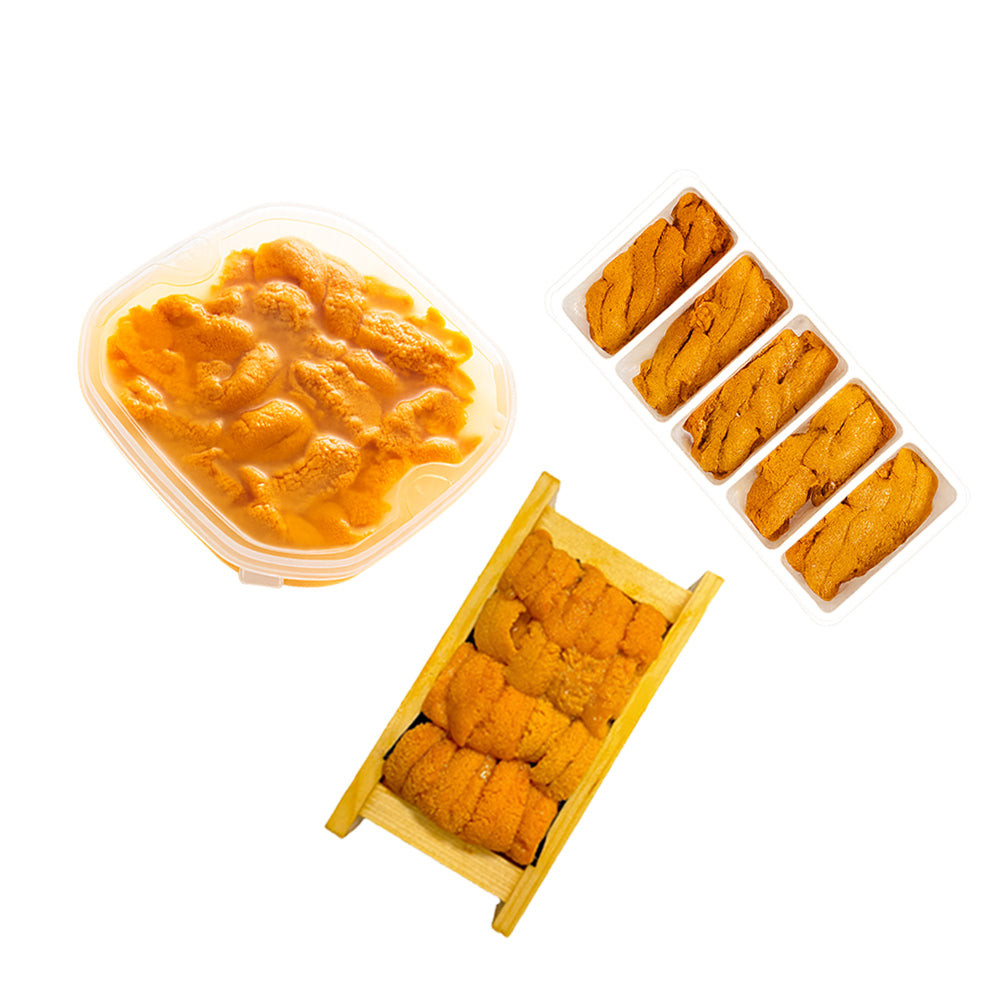 Experience the full spectrum of uni with our Noble Uni Special Set, featuring three distinct styles of premium sea urchin roe. Savor the delicate sweetness of Fresh Uni, the clean and natural ocean flavor of Ensui Uni preserved in saltwater brine, and the rich, versatile depth of our Frozen Grade A Uni. Perfect for uni lovers who want to explore a variety of flavors, discover new textures, and enjoy an at-home tasting experience worthy of a chef.